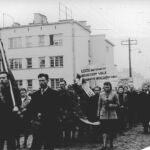 Procesja żałobna idzie przez miasto obecną ul. ks. Jerzego Popiełuszki w stronę ul. Ofiar Katynia na Cmentarz Komunalny (fot. MKDAK)